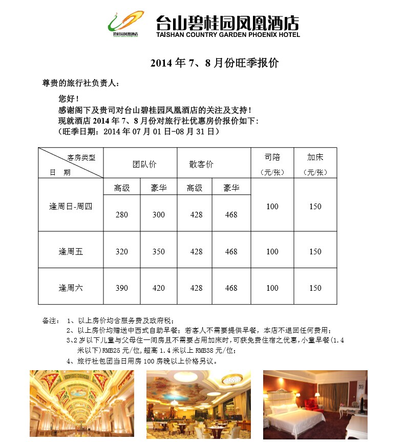 臺(tái)山2014年7、8月份旺季價(jià)格調(diào)整通知
