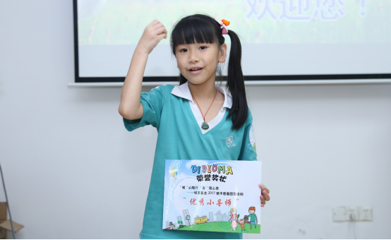 參觀完牧場后,啟聰學(xué)校兒童教授城發(fā)基金兒童簡單的手語,如“奶牛”、“我喜歡喝牛奶”、“謝謝”等詞組和短句。每位啟聰學(xué)校兒童均獲得城發(fā)基金頒發(fā)的“優(yōu)秀小導(dǎo)師”獎狀。