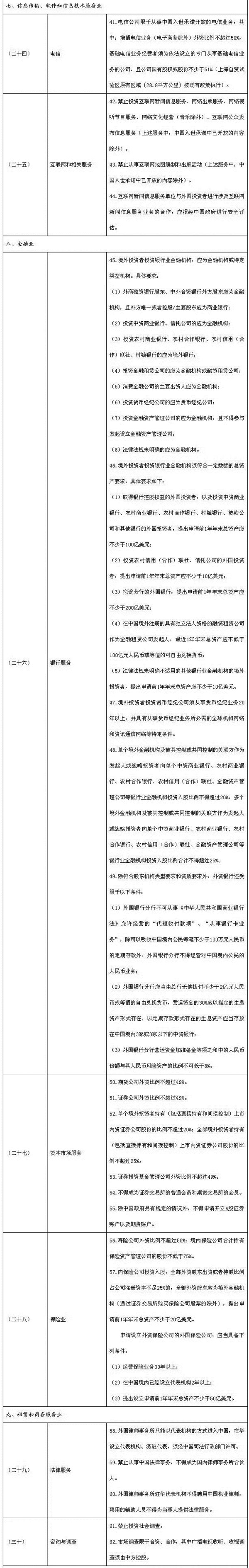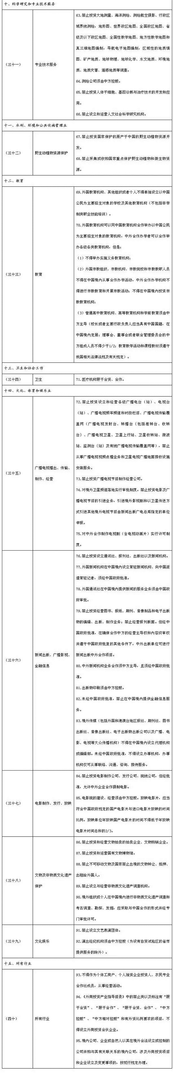 外商投資準入特別管理措施(負面清單)