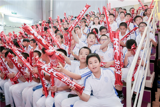 清華附中的同學(xué)們現(xiàn)場觀看2017肯德基三人籃球賽揭幕戰(zhàn)
