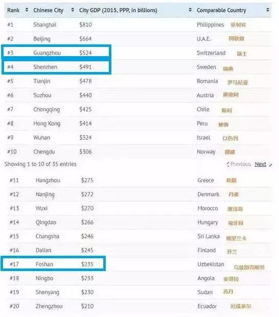 廣州排名第三相當一個瑞士!