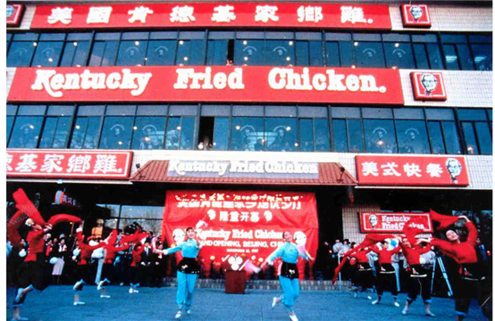 1987年11月,肯德基進(jìn)入中國,在北京前門開設(shè)了中國第一家餐廳