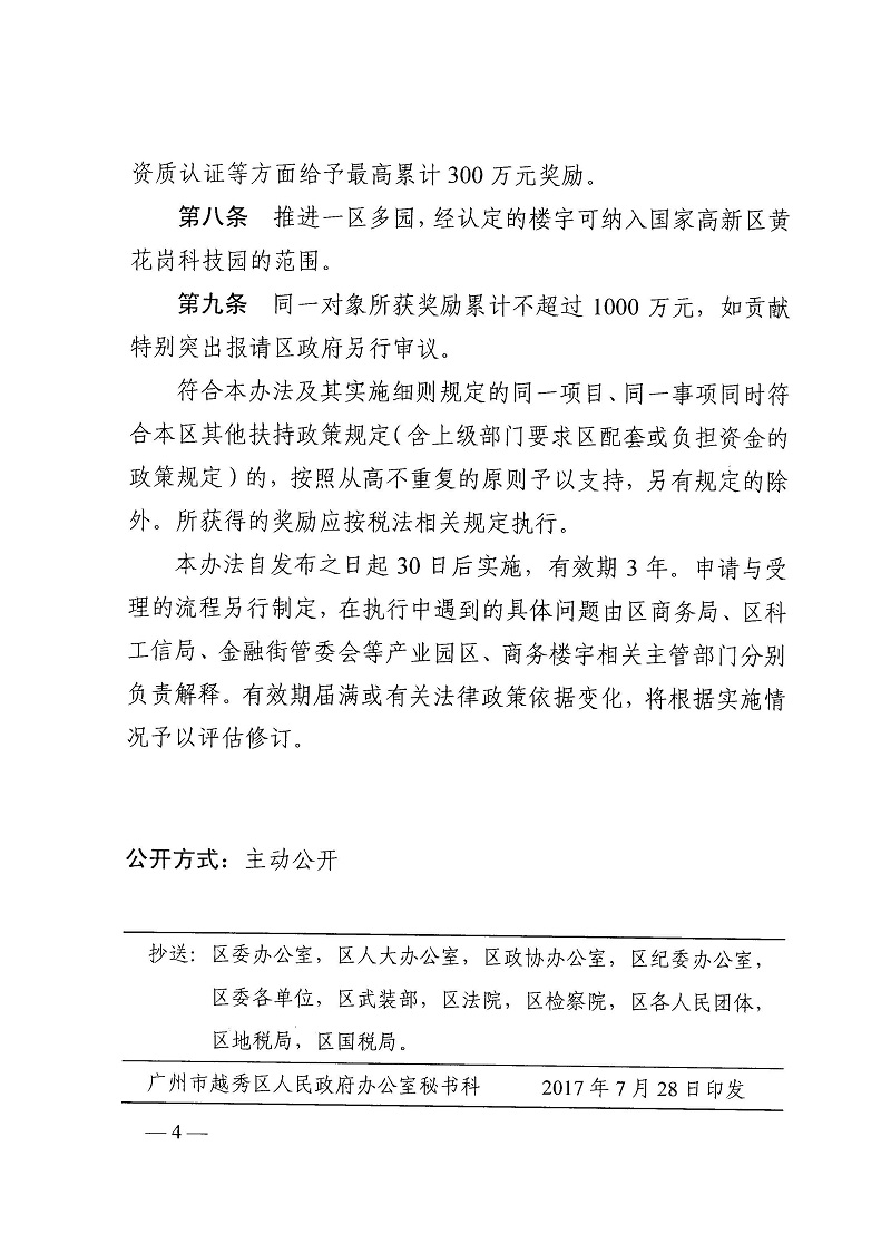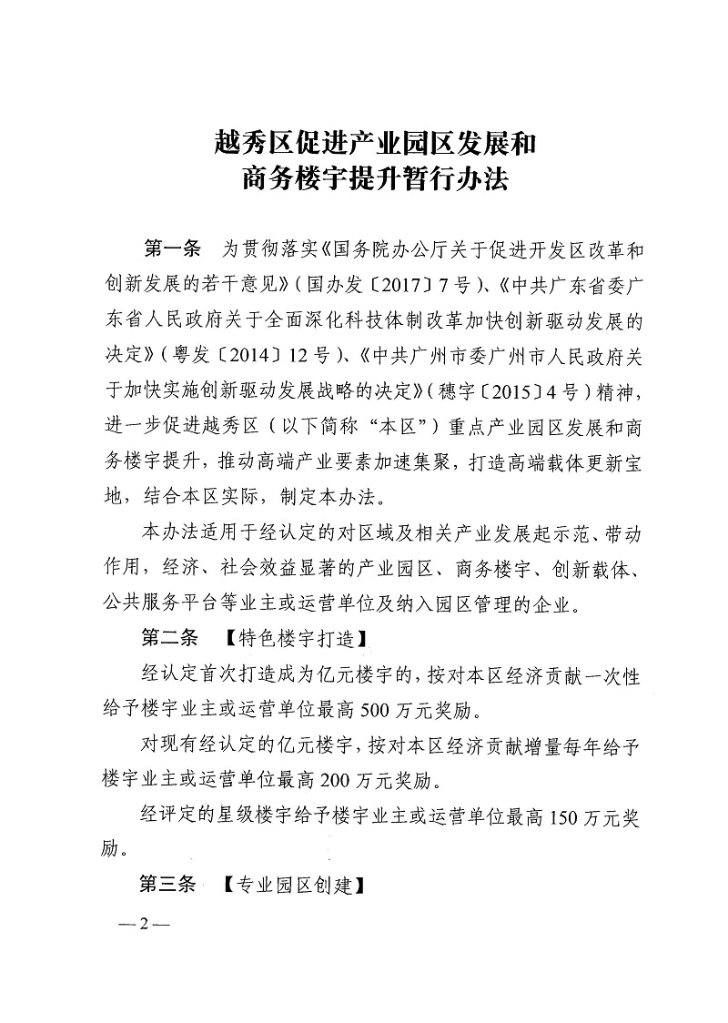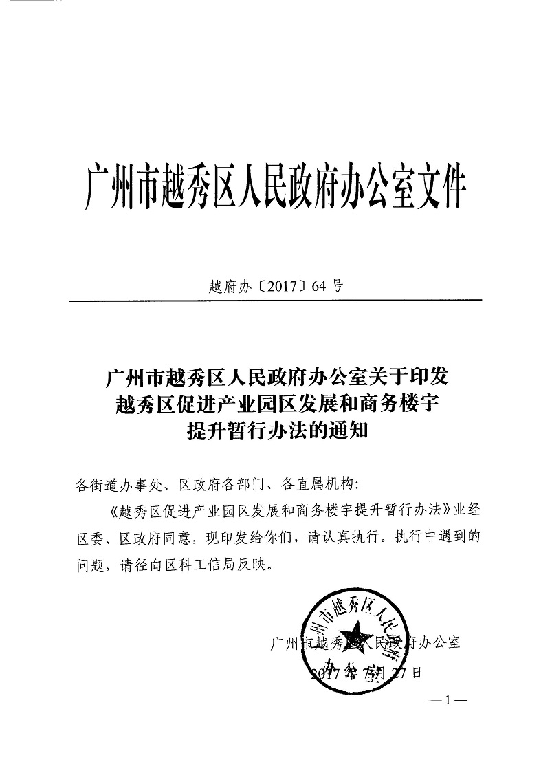 廣州市越秀區(qū)人民政府辦公室關(guān)于印發(fā)越秀區(qū)促進(jìn)產(chǎn)業(yè)園區(qū)發(fā)展和商務(wù)樓宇提升暫行辦法的通知