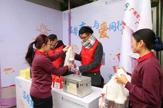 寒風(fēng)中為志愿者們送上一杯熱飲