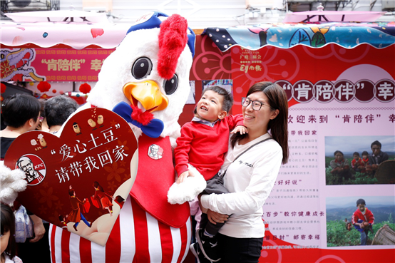 融入“公益慈善”與“兒童關(guān)愛”讓今年的廣府廟會成為了“最暖心”的一屆廟會。在廟會的創(chuàng)意市集中,由兒童繪畫大賽作品制作的24頂創(chuàng)意帳篷在陽光下閃耀美麗的光彩,其中一頂寫著肯德基的“肯陪伴幸福小屋”吸引了不少圍觀的人們。這里有捐一元愛心土豆義賣、百食百步教你健康成長、膳食寶塔小游戲、有愛好好說親子溝通手冊等互動內(nèi)容。“寶貝,山區(qū)的哥哥姐姐們很辛苦勞動,我們也買一份土豆好不好?”在了解了肯德基推薦的“愛心土豆”是來自貧困山區(qū)孩子們種植的時候,圍觀的人們紛紛慷慨解囊,讓肯德基的姐姐們忙得不亦樂乎。送上愛心的人們除了購買到優(yōu)質(zhì)的土豆還能獲得一套肯德基與廣州郵政合作的廣府廟會的“首日封”愛心明信片,作為廟會的幸福記錄或是為親朋好友寄去美好的祝福。