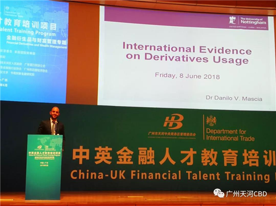 6月8日,由廣州市天河中央商務區(qū)管委會和英國國際貿易部聯(lián)合主辦,廣州市總部經濟協(xié)會支持“中英金融人才教育培訓——金融衍生品與財富管理專題”在廣州珠江城國際會議中心舉行。