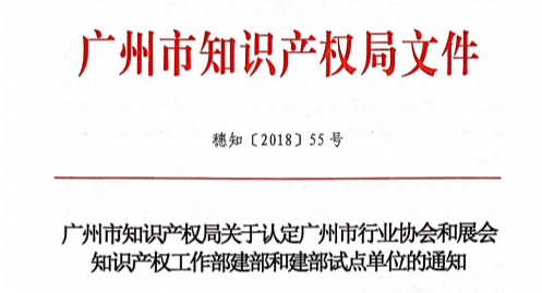 我協(xié)會被認定為2018年廣州市行業(yè)協(xié)會和展會知識產權工作部建部試點單位