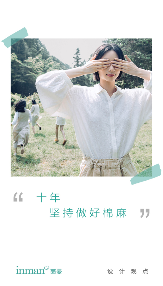 2018年以來,茵曼升級了設計哲學“以舒服為本,為舒心而生”。在產(chǎn)品設計上,加強了品牌的棉麻印記,推出“棉素清麻”系列,將茵曼對于棉麻的理解直接體現(xiàn)與產(chǎn)品設計與面料開發(fā)中。