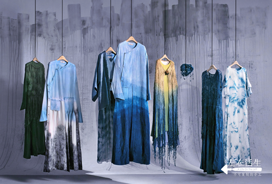 另一方面,他們積極與國家非遺傳承人合作,包括國家級藍(lán)印花布印染技藝傳承人吳元新、中國天然染色與中國色彩研究大師黃榮華等等,期望傳統(tǒng)新生。其中,與黃榮華合作推出的“艸染”系列中的5套產(chǎn)品,被中國絲綢博物館收藏。