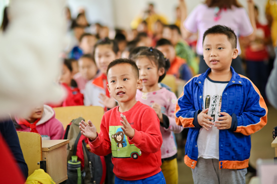 故事會(huì)上,肯德基的故事姐姐還給孩子們帶來了一個(gè)翼龍學(xué)飛的故事,“小翼龍為什么要站在高處學(xué)飛呢?”孩子們聽得很認(rèn)真紛紛舉手搶答。“希望小朋友們都可以像小翼龍一樣,勇于嘗試,閱讀更多課外書本,增長知識(shí)。”此外,志愿者們還制造了一個(gè)驚喜,當(dāng)歡快的音樂響起,肯德基奇奇可愛登場。原來害羞的孩子們也加入進(jìn)來,舞動(dòng)起可愛的小手,整個(gè)課室的孩子們都跟著音樂的節(jié)奏,和奇奇一起邊跳邊哼唱,歡樂的歌聲和笑聲讓雨天的大山顯得格外明亮。