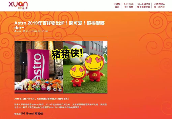 詠聲動(dòng)漫“豬豬俠”成為2019年馬來(lái)西亞Astro新年吉祥物