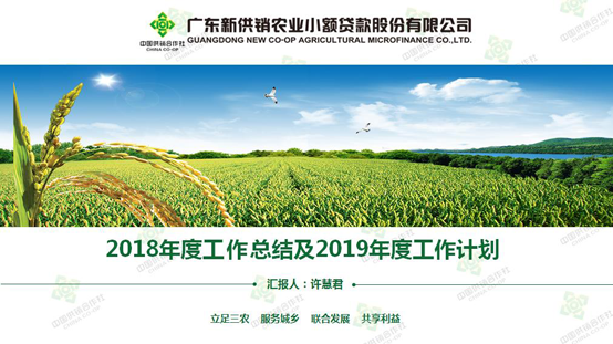 新供銷小貸公司將繼續(xù)堅持“立足三農(nóng),服務(wù)城鄉(xiāng);聯(lián)合發(fā)展,共享利益”的經(jīng)營理念,團結(jié)奮進,不忘初心,砥礪前行,迎接充滿機遇與挑戰(zhàn)的2019!