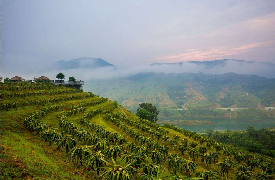 9月下旬的清晨,位于貴州省北盤江左岸的貞豐縣“龍之谷生態(tài)園區(qū)”,剛吃過早飯的園區(qū)職工們沿著總長(zhǎng)7公里的江岸,向遠(yuǎn)處的河谷山地匆匆前行。抬眼望去,山地由西北向東南呈階梯狀逐級(jí)下降,形成多級(jí)臺(tái)面,在這壯觀的梯田上,一叢叢紅艷的火龍果懸掛在枝頭。這便是他們今天的采摘目標(biāo)。